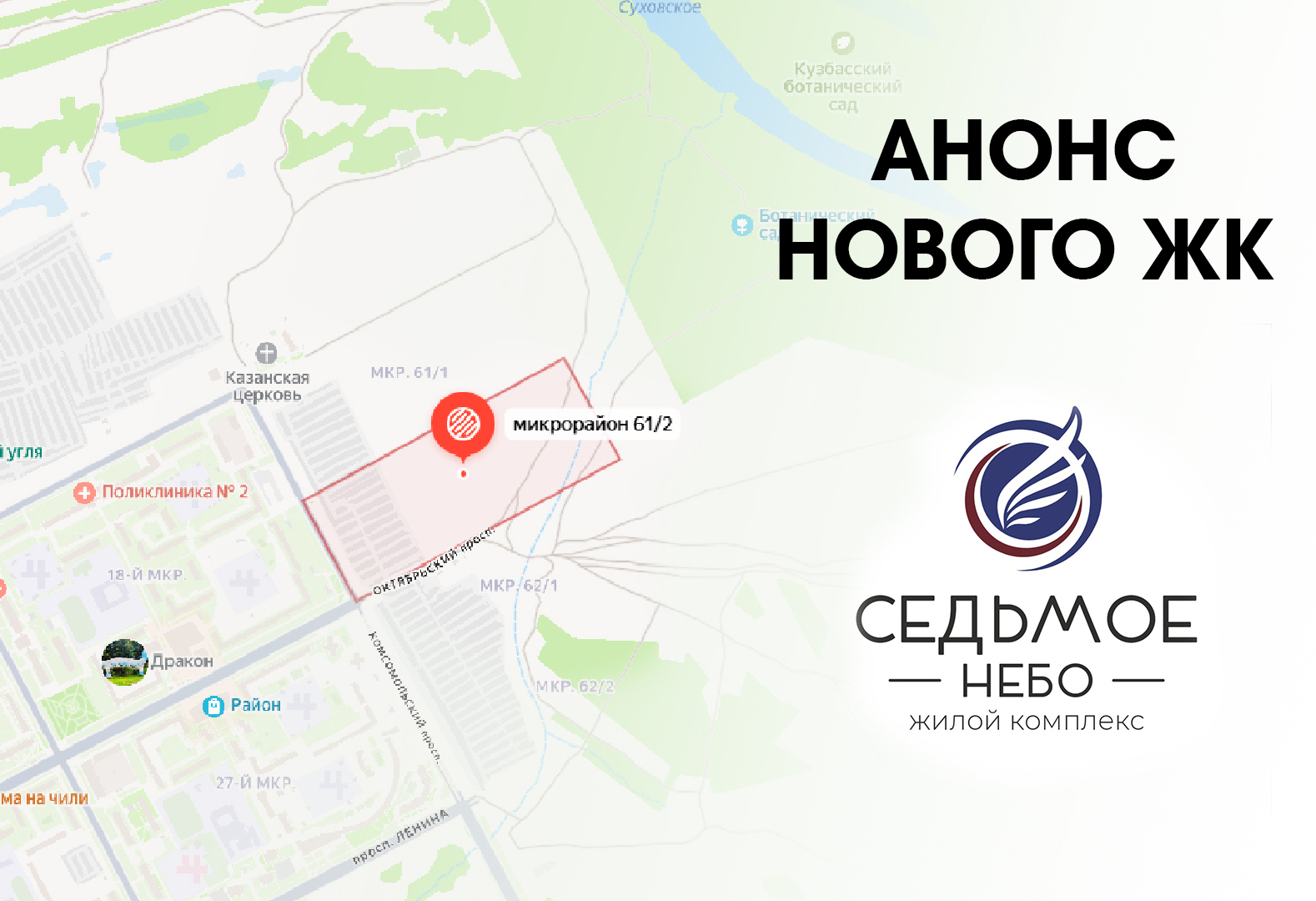 Хотим поделиться важной новостью, о планах по возведению нового жилого комплекса комфорт-класса в перспективном микрорайоне 61/2 Ленинского района. Проект, получивший поэтичное название «Седьмое небо», займет участок с выгодным расположением по координатам 55.361015, 86.180976.